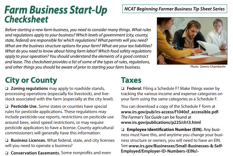 Farm Business Start-Up Checksheet