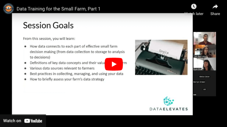 CAFF’s Small Farm Tech Hub hosted a data training for the Small Farm which was a three-part webinar series held during November-December 2022. The webinar recordings are provided below along with a list of resources referenced during the series.Â