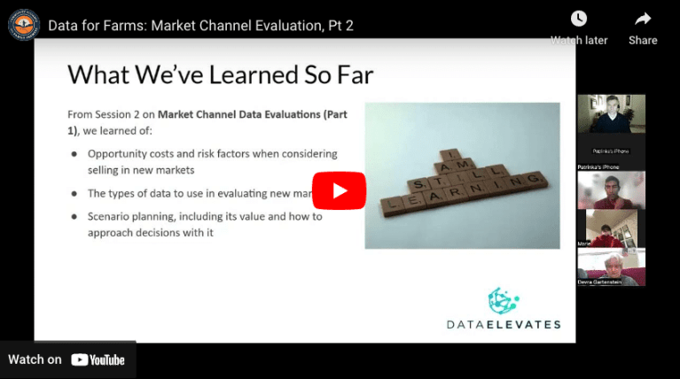 This workshop series was designed to provide a small farm business with key skills in how to understand and use data for business success. The workshop series is designed to provide the fundamentals in data concepts, sources, and management, how to use data to evaluate sales channels, and how to use data for scenario planning.Â