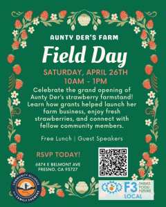 Join us for a special farm tour at Aunty Der’s Farm and celebrate the grand opening of her strawberry farmstand! This exciting event will be led by Der Yang Moua, who will share her journey as a small-scale farmer and how state and federal grants helped her start her farm business.