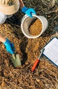 Si es posible, realice una prueba del suelo en su área de cultivos antes de que ocurra un incendio para establecer un punto de referencia con el que pueda comparar después. Asegúrese de localizar las ubicaciones donde realizó las pruebas antes de enviarlas al laboratorio. También es importante entender el historial de su suelo: incendios previos, inundaciones, impactos del ganado, actividades industriales, etc. Si va a tomar pruebas después de un incendio, se recomienda hacerlo en múltiples sitios dentro de la zona quemada y homogenizar las pruebas para establecer si hay una amenaza como punto de partida. Luego, tome pruebas más específicas si se identifican contaminantes que puedan ser problemáticos. También es necesario realizar pruebas de benceno en los pozos de riego.
