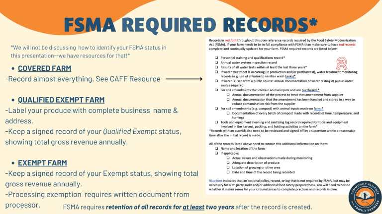 - inspected by CDFA’s Produce Safety Program (in CA)