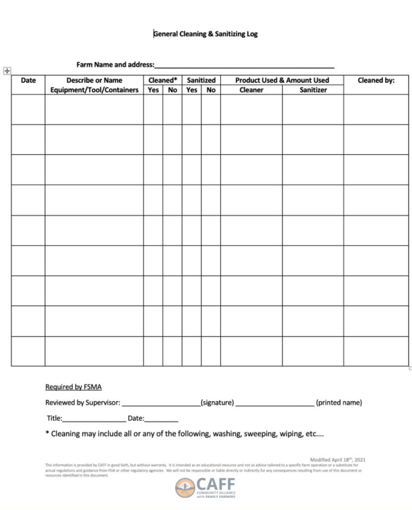 - Equipment sanitation logs