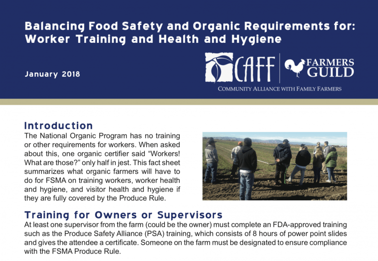 This factsheet explains what farms that need to be in full compliance with the federal Food Safety Modernization Act (FSMA) worker health and hygiene requirements. There is also an overview